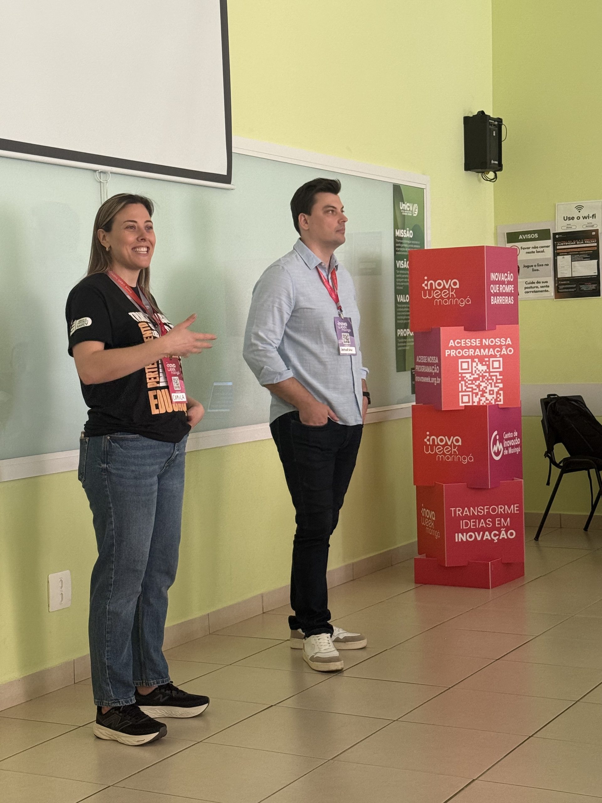Como anfitrião da InovaWeek no dia 30 de setembro de 2025, o UniCV – Centro Universitário Cidade Verde contribuiu para o fortalecimento de Maringá como polo regional de inovação, estimulando a integração entre pessoas, conhecimento e tecnologia. A iniciativa ampliou parcerias estratégicas, promoveu a transferência de conhecimento e incentivou a inovação prática por meio de atividades realizadas em diferentes espaços da instituição, como o Smart Space, Espaço Maker e Auditório Euro/UniCV, abordando temas como inovação contemporânea, projetos e jogos digitais, inteligência artificial e storytelling para projetos inovadores.